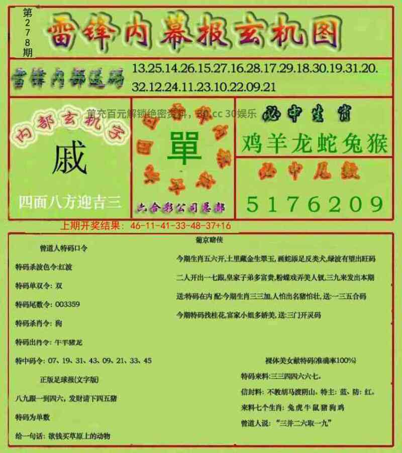 278期:上中下特码=上】开:虎28准